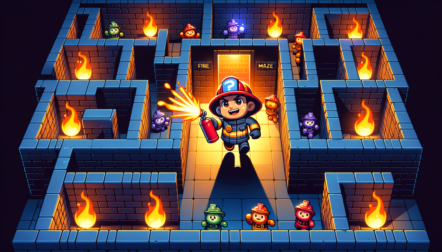 Play the Fire Fighter arcade game! Navigate the maze, extinguish fires, rescue people and pets. Compete for high scores and chat with fellow players.