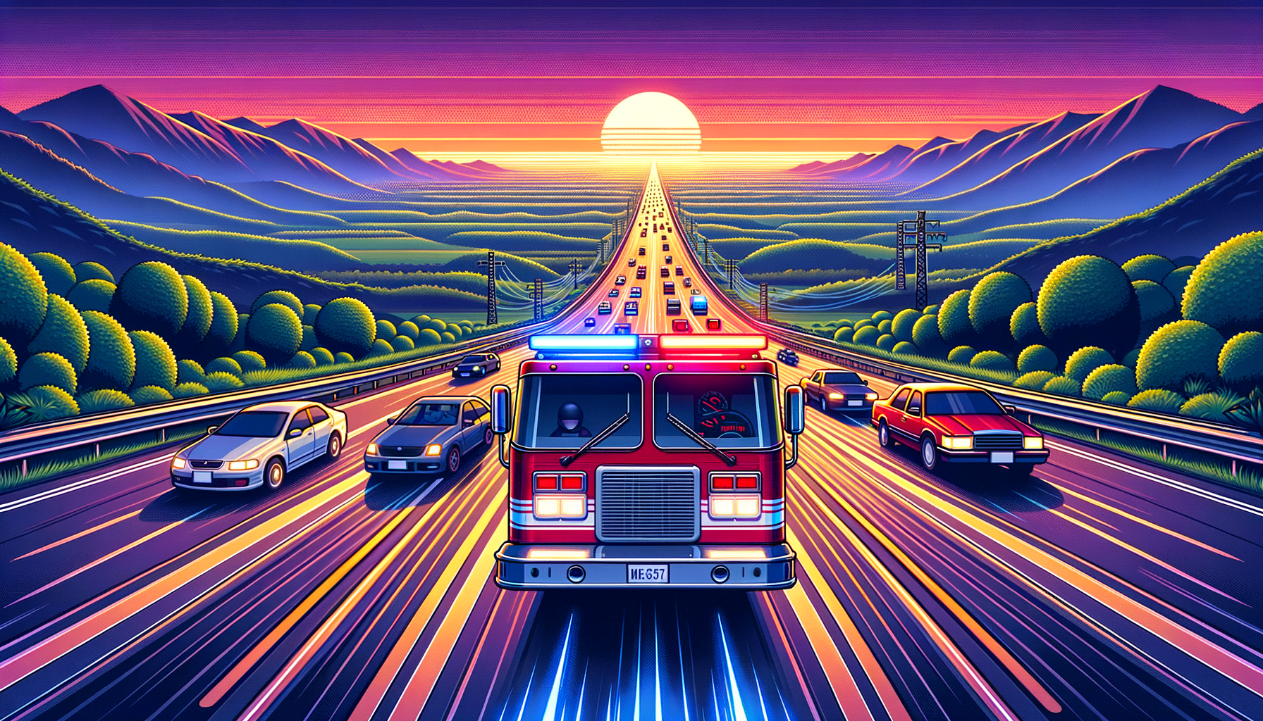 Race your fire engine through traffic, dodge vehicles and rack up points as you respond to emergencies. Arrow keys or WASD to steer — how far can you go?